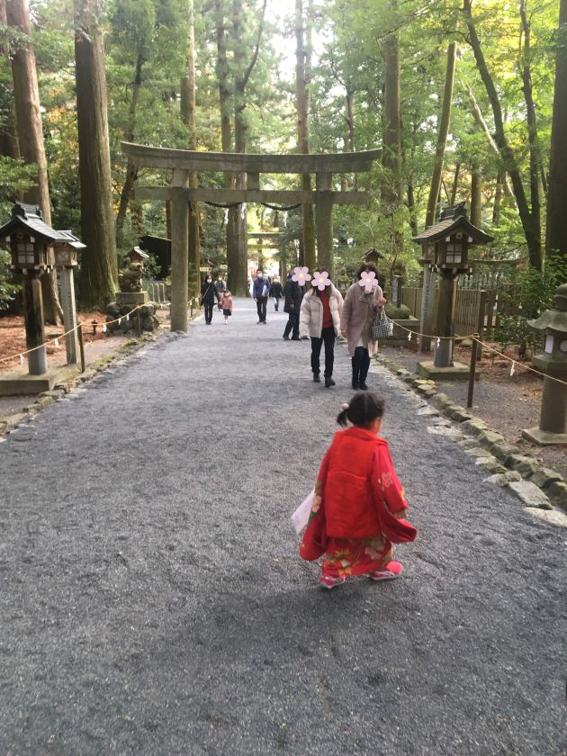 一般的には女の子は3歳と7歳で着物を着て、男の子は5歳で袴を穿いて、近くの神社やお寺に参拝に行きます。