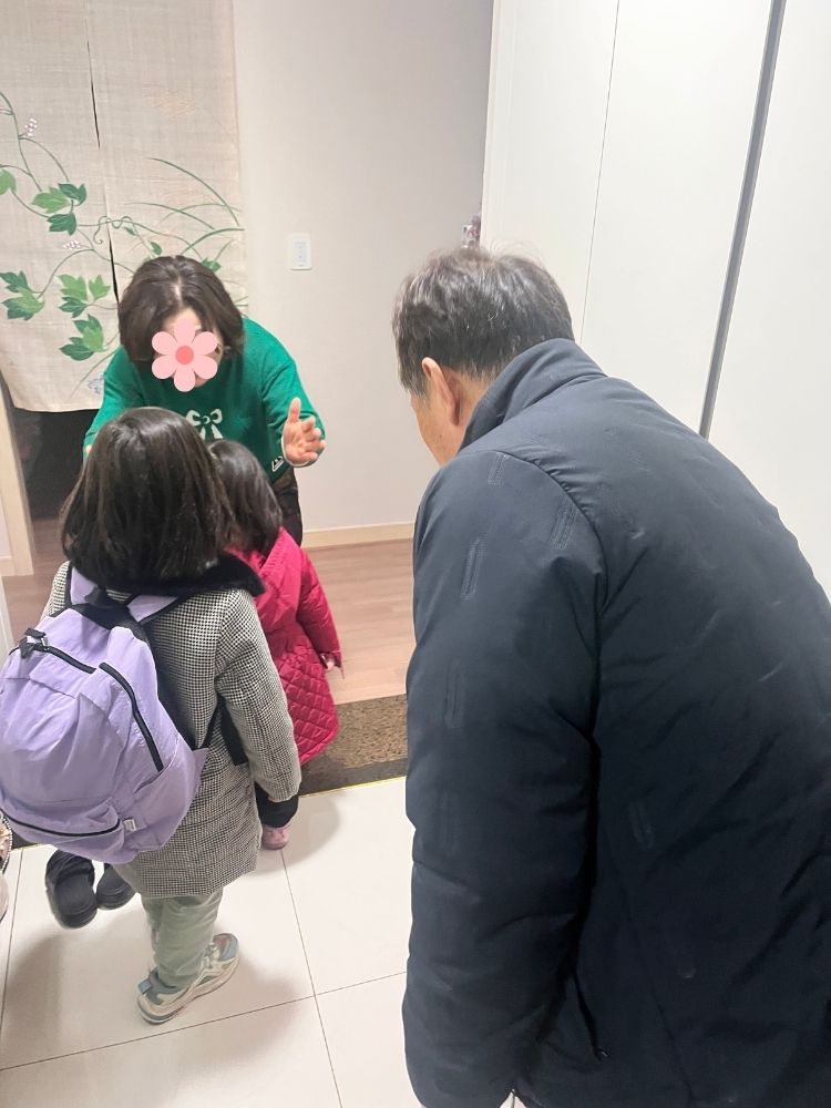 子ども達は久々のハラボジとの再会に喜びつつ、ちょっぴり恥ずかしそうこんな反応するのも成長だな~と、すし子ママはしみじみ。