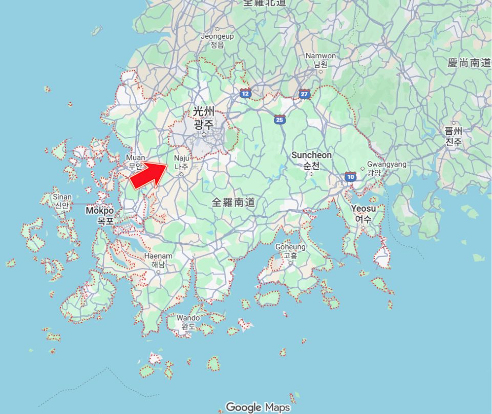 私たちの帰省先は、韓国の全羅南道にあるナジュ市(羅州市)というところです。ナジュ市は三国時代、百済37郡のひとつ、発羅郡と呼ばれた場所です。光州広域市の南に面しており、梨の栽培で有名なナジュ市。近年では過疎化対策として韓国電力公社の本社が置かれ、11万人台まで人口が増えましたが、それでもまあまあの田舎です。でも私は都会より全然こっちが好き